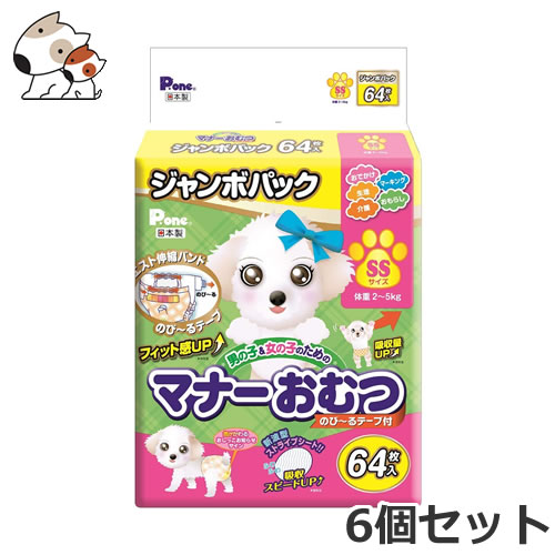 第一衛材 男の子&女の子のためのマナーおむつ のび〜るテープ付き ジャンボパック 64枚入 SSサイズ 6個セット トイレ しつけ おでかけ用品 ペット 犬用 お得なケース価格
