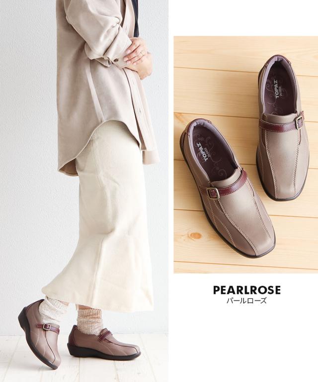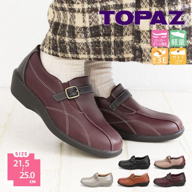 ウォーキングシューズ レディース 通勤 3e 幅広 スリッポン コンフォートシューズ おしゃれ 歩きやすい 軽い トパーズ 靴 母の日 黒 ブラック ブラウン パールローズ 軽量 小さい 大きいサイズ TOPAZ 2404
