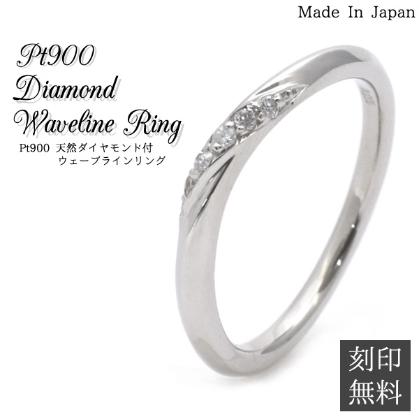 1本販売 レーザー 刻印無料 Pt900 天然ダイヤモンド付 ウェーブラインリング 1〜18号 プラチナリング 指輪 ペアリングにおすすめ プラチナ製 女性 贈り物 クリスマス 記念日 送料無料 指輪 アクセサリー