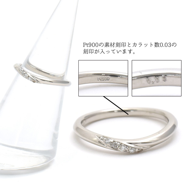 レーザー刻印無料!Pt900 天然ダイヤモンド付ウェーブラインリング