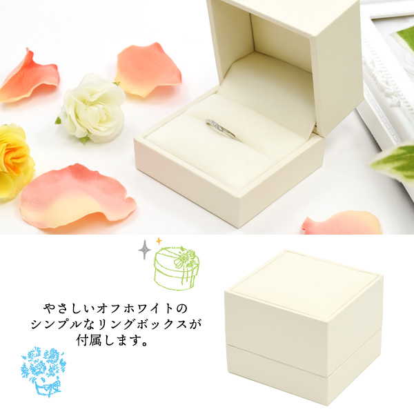 やさしいオフホワイトのシンプルなリングボックスが付属します。