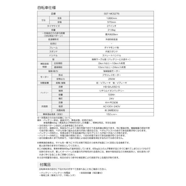 | 独自アシストプログラム採用 27インチ オリジナル電動アシスト自転車 SST-MCS276 クロスバイク 6段変速ギア 電動自転車 通勤通学に便利 電動自転車 おすすめ 格安 | |