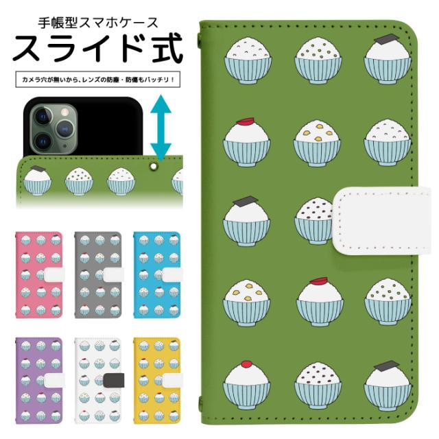 スマホケース 手帳型 全機種対応 スライド式 手帳型ケース iPhone 16e SE3 13 13mini 12 12Pro 12mini SE2 ケース アイフォン スマホカバー プリント 手帳 カバー スマホ 携帯ケース 携帯カバー ごはん 携帯カバー dslide573