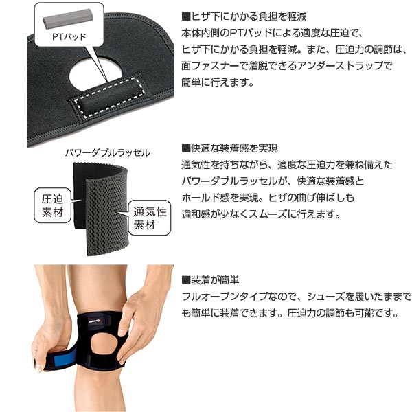 成長期の小学校高学年から高校生向け。ヒザ全体をホールドし、負荷を軽減します。