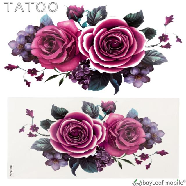 タトゥーシール タトゥー シール ペイント バラ 花 防水 ボディシール TATOO 入れ墨 刺青 転写 防水 かわいい カラフル TBX-9032