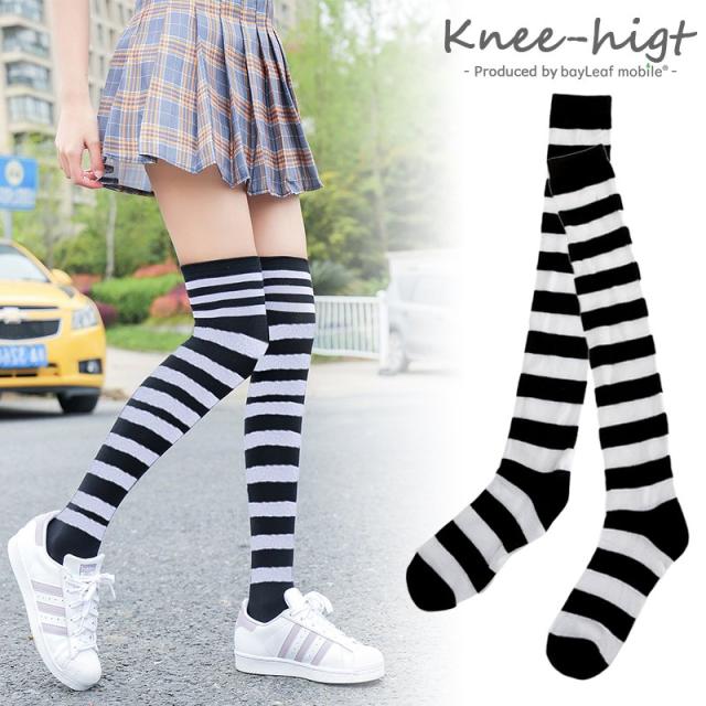ハイソックス ニーハイ ソックス コスプレ 衣装 コスチューム用 ストライプ ブラック 靴下 ボーダー
