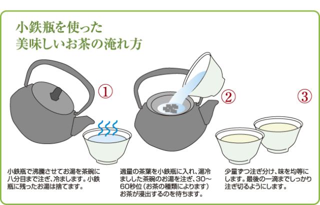 南部鉄瓶で沸かしたお湯は、水道水の塩素臭などが抑えられ、まろやかな味わいが感じられます。