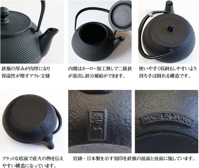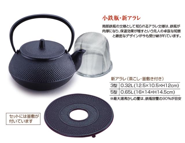 南部鉄瓶 3型新アラレ(釜敷き付き) 【 鉄瓶 南部鉄器 日本製 直火 岩鋳 南部鉄器 急須 鉄分補給 鉄瓶兼用急須 IWACHU やかん 南部小鉄瓶 鉄分 プレゼント 】