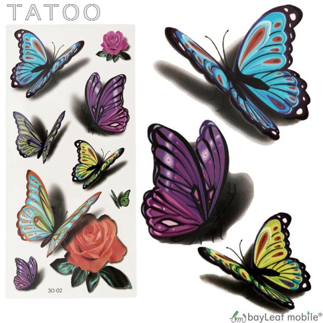 タトゥー シール 3D 蝶 バラ 防水 ボディシール TATOO 入れ墨 刺青 転写 防水 かわいい カラフル 3D-02