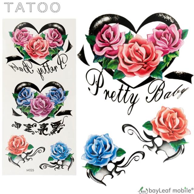 タトゥーシール タトゥー シール ペイント 3D バラ 花 防水 ボディシール TATOO 入れ墨 刺青 転写 防水 かわいい カラフル M025