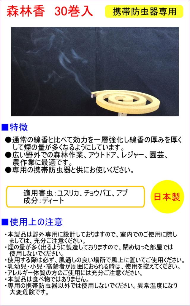 森林香 30巻入 日本製 森林香シリーズ 線香 太い 虫 虫よけ 防虫 蚊 ハエ アブ 森林作業 農作業 屋外専用