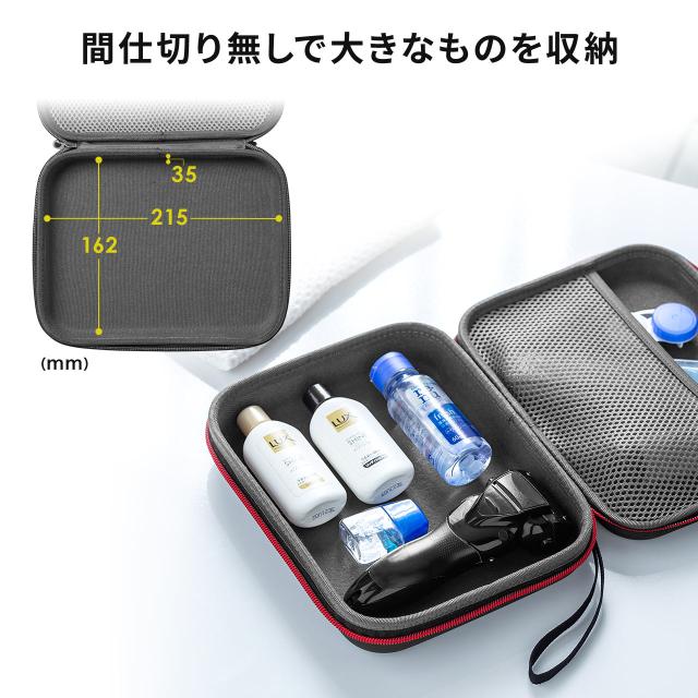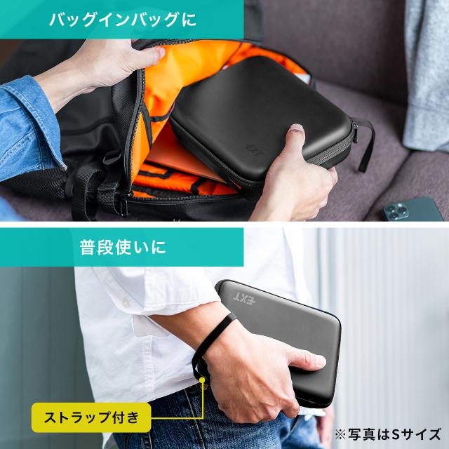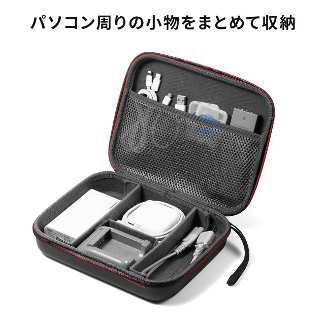 ⇒ご購入の前にご確認下さいモバイルバッテリーやUSBケーブルなど、バッグの中の小物を整理できる。変形しにくく、中身をしっかり守れるセミハード仕様のトラベルポーチ。
