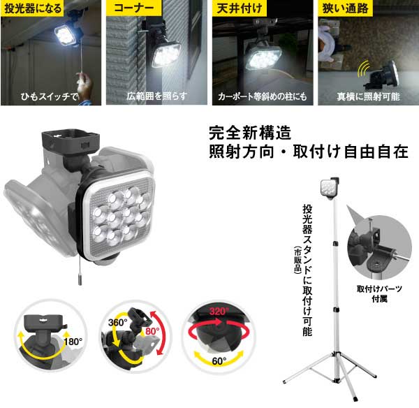 品名 12W×1灯 フリーアーム式LEDセンサーライト