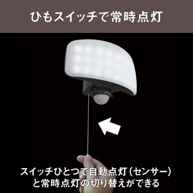 < ワイドにやわらかな光で照らすコンセント式LEDセンサーライト >