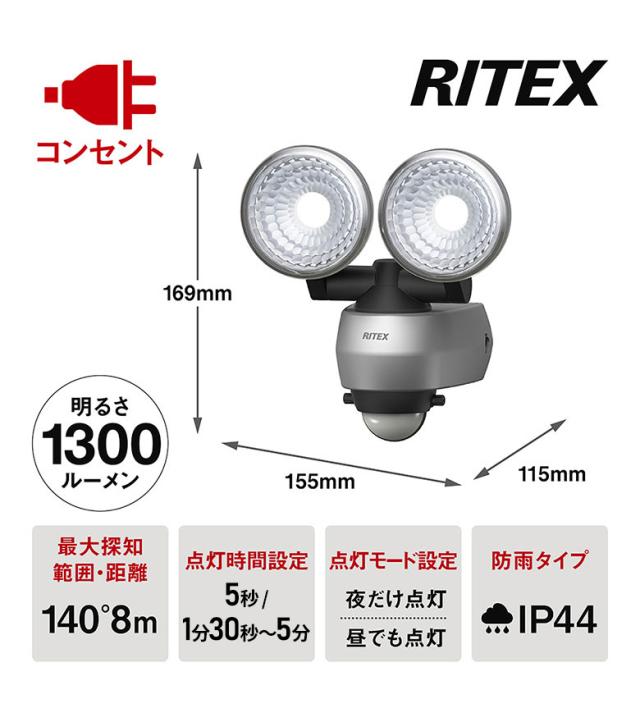 【58%引き】 人感センサーライト 屋外 防犯ライト センサーライト ムサシ RITEX 7.5W×2灯 LEDセンサーライト(LED-AC315)ledライト 玄関 照明 防犯グッズ