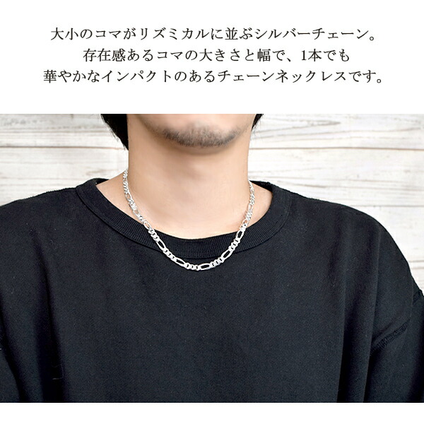 シルバー フィガロチェーン ネックレス 幅約6.6mm 50cm シルバーチェーン チェーン シルバー925 メンズ ネックレス 銀 フィガロ 925 チェーンのみ メンズ