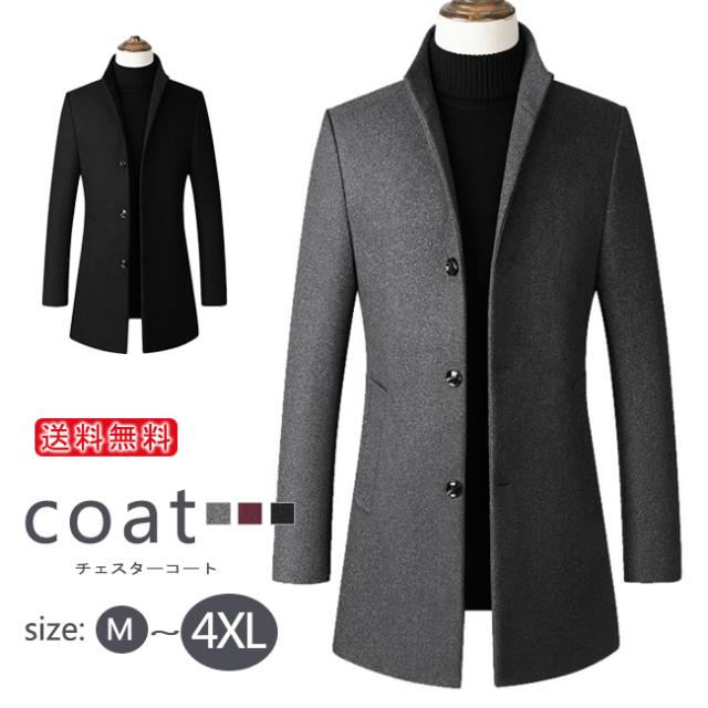 チェスターコート ロング メンズ アウター ウール ビジネスコート 細身 スリム ファッション 人気 30代 40代 50代