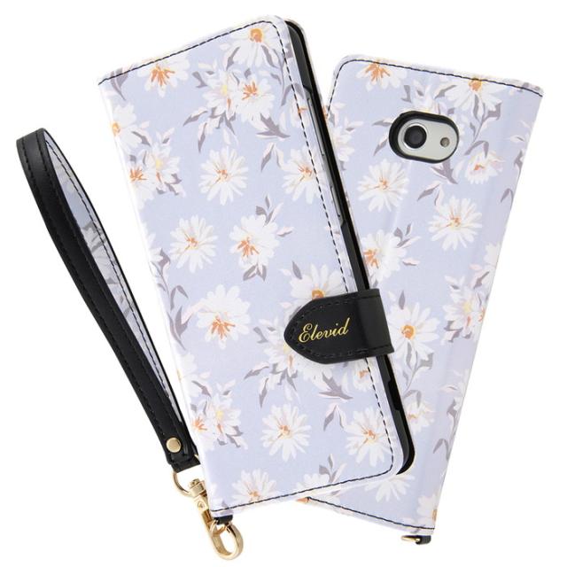 BASIO4 ケース 手帳型レザーケース 総花柄 ハンドストラップ付き ブルー ベイシオ4 手帳ケース カード収納