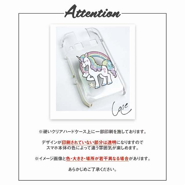 デザイン以外の部分は透明なので携帯本体の色がいかせる可愛い仕上がりになっています。
