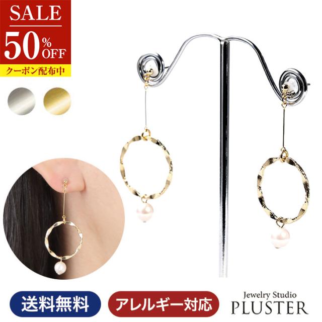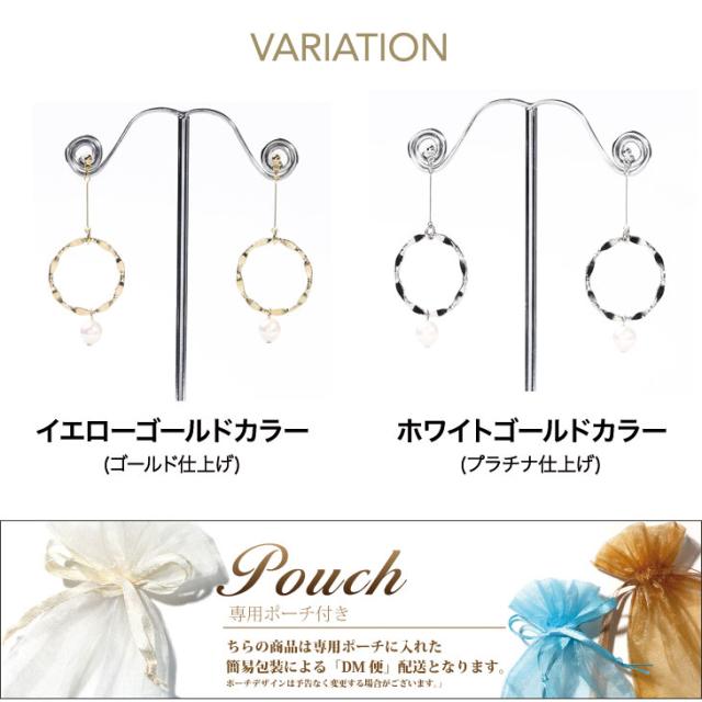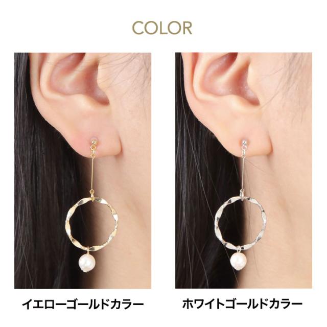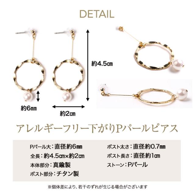 【金属アレルギー対応】アレルギーの方にも優しいチタンポスト。アレルギーフリーのロングピアスは、サークルモチーフで大人可愛い。大きめの一粒パールが上品に揺れる、かわいいパールピアスです。【素材・商品サイズ】全長4.5cm×約2cm Pパール直径約6mm ポスト長さ約1cm 太さ0.7mm 本体部分:真鍮製 ポスト部分:安心のチタンポスト ストーン:Pパール 付属:専用ポーチ袋 シリコンキャッチ カラー:ゴールド仕上げのイエローゴールドカラー プラチナ仕上げ(ロジウムコーティング)のホワイトカラー ※Pパールとは、プラスチック珠を芯として真珠の箔を塗布し光沢を出した模造真珠です。【専用ポーチ付き】専用ポーチにお入れしてお届けしますので、ご自身へのご褒美や彼女や奥様に、男性から女性へ大切な想いを伝えるプレゼント・女性へのギフトとしてもおすすめです。ホワイトデー・誕生日に、またバレンタインのお返し・ホワイトデー・出産祝い・母の日のプレゼント・お嬢様への卒業式や入学式のお祝いなどでも人気の商品です。