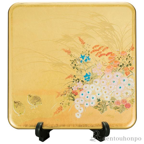 蒔絵の美しさ、盛絵の力強さ、煌びやかな箔の輝きを実感していただけるパネルマットです。お土産として飾っていただけるようスタンドが付いており、特に海外の方に喜ばれています。また、コースターとしても実用的で使い方は色々です。