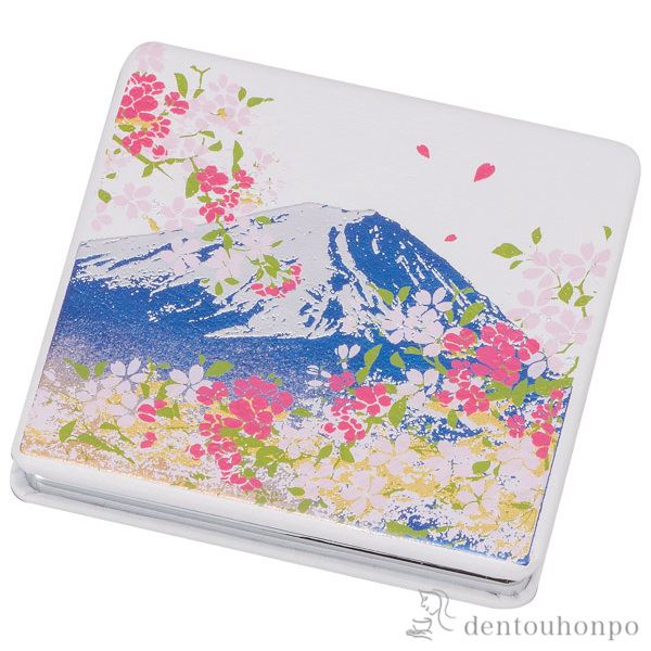 ソフトコンパクトミラー 富士桜 S 拡大鏡付き ( 名入れ有料 退職祝い 定年 ハンドミラー コンパクト お土産 記念品 アンティーク )