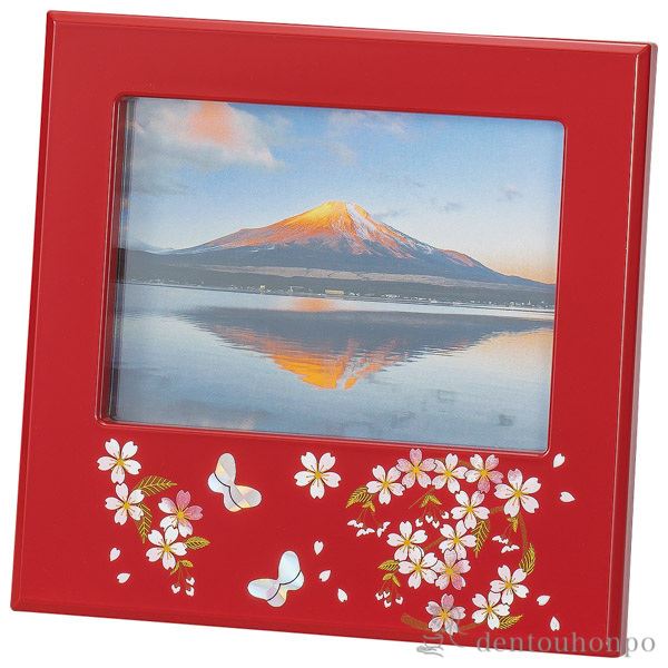 ピクチャー 赤 さくら野 ( 名入れ有料 退職祝い 定年 写真立て フォトフレーム 写真たて おしゃれ かわいい 山中漆器 結婚 出産 )