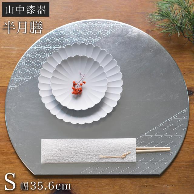 半月膳 プレースマット 麻の葉 シルバー S ( ラックヌーボー 名入れ有料 折敷 ランチョンマット お盆 トレイ トレー 祝膳 会席膳 )