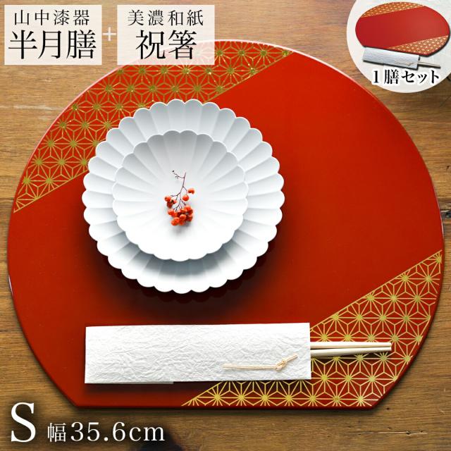 半月膳 プレースマット 麻の葉 レッド・ゴールドライン S 「即日発送対応」 ( ラックヌーボー あすつく 名入れ有料 折敷 )