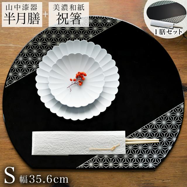 半月膳 プレースマット 麻の葉 ブラック・シルバーライン S 「即日発送対応」 ( ラックヌーボー あすつく 名入れ有料 折敷 )