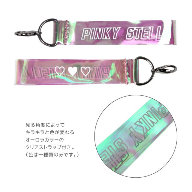 ◆角度によってキラキラと色が変わって見えるオーロラカラーのストラップ付き。