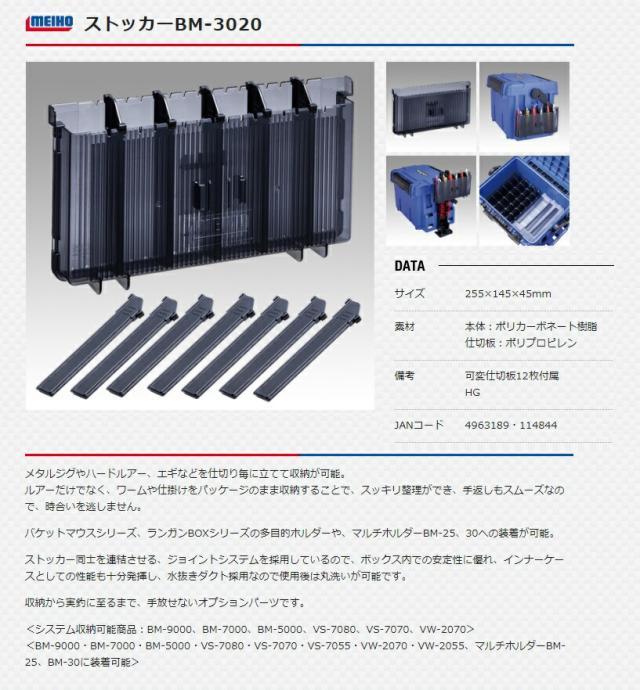 メイホウ 明邦化学 バケットマウス用 ストッカー BM-3020 可変仕切板12枚付属 サイズ255x145x45mm メイホー MEIHO 在庫