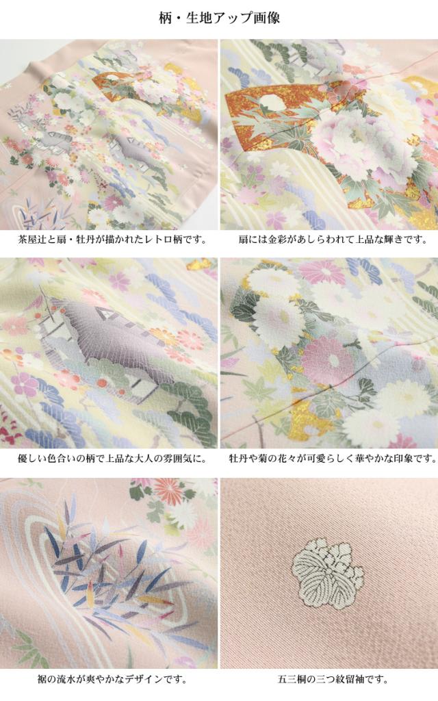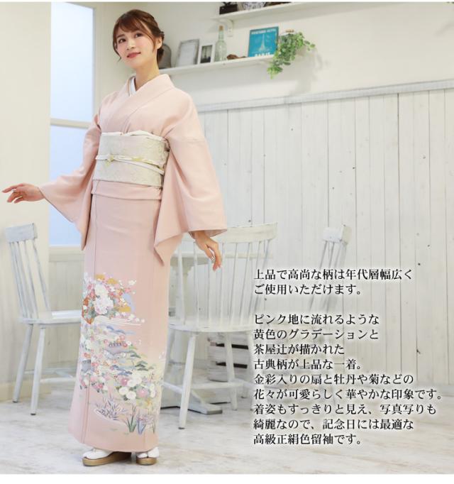 レンタル 正絹色留袖19点フルコーディネートレンタルセット「ピンク地に牡丹・扇と茶屋辻」色留袖 三つ紋 結婚式 披露宴 レンタル 安い