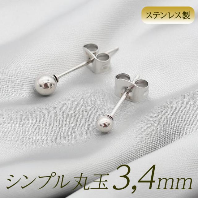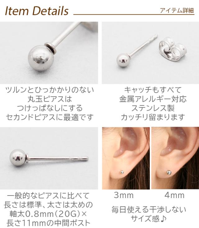 セカンドピアス つけっぱなし 軸太 片耳 丸玉 ボール ホワイトゴールド 3mm・4mm 金属アレルギー サージカル ステンレス サージカル 医療用 シンプル 定番 メンズ レディース 小さめ 【全品1個ずつバラ売り】 プレゼント