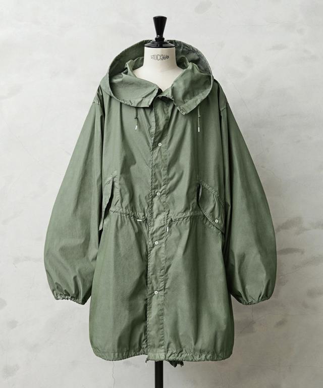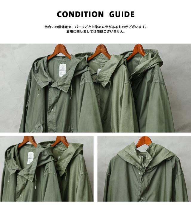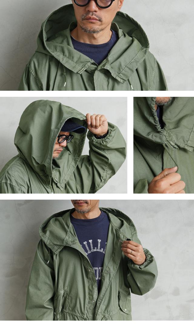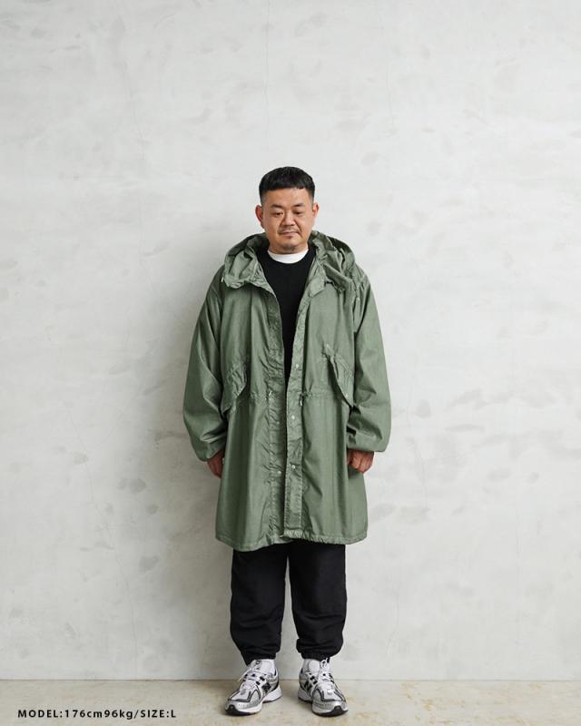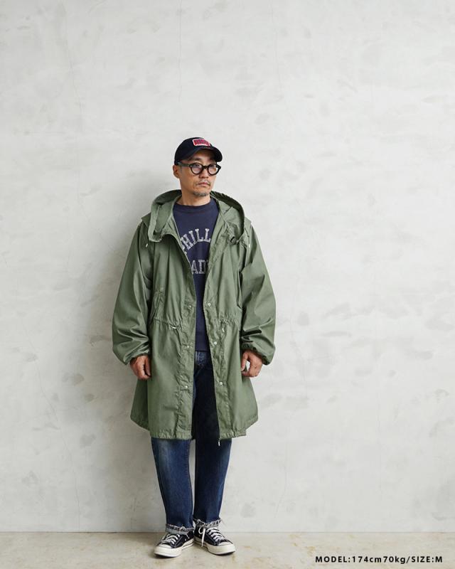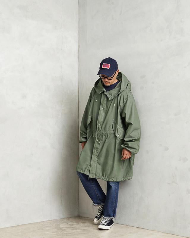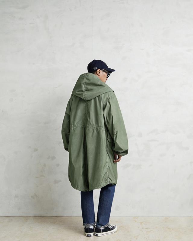 ライトなやや光沢のあるODカラーが、人気と希少性から信じられないくらい高騰したM-65フィッシュテールの様な存在感で、春先のスプリングコートや多少の撥水性もあるのでレインコート代わりに最適なアイテムです。パッチやステンシル等で、自分流にカスタムするのもオススメです。
