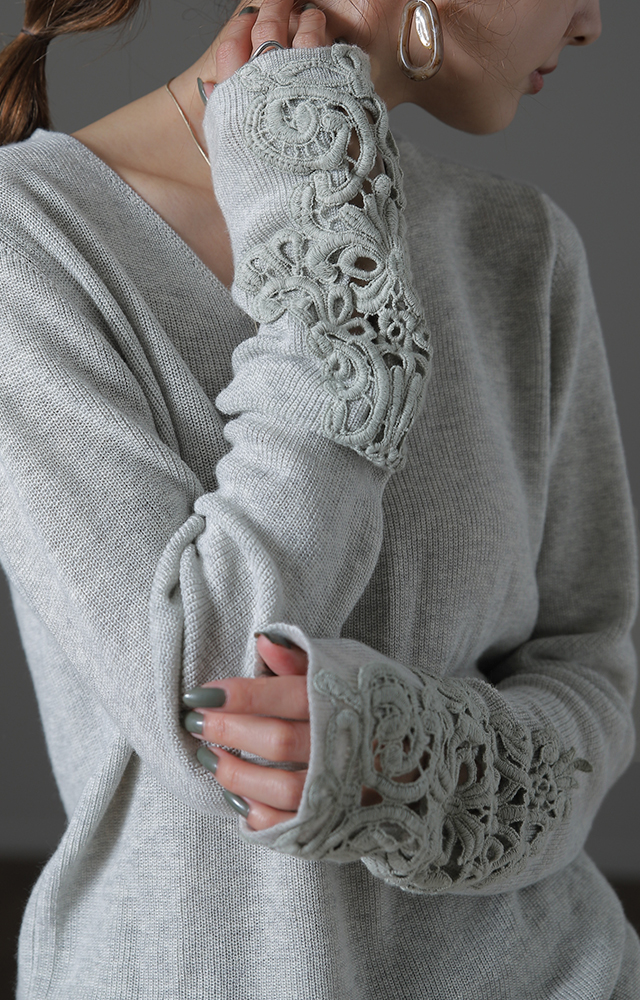 ハイゲージニット レーストップス 袖レースニット ライトニット ニットウェア ニットウエア ニットプルオーバー カットソー プルオーバー カットアウト ロング 肌隠し 袖レース 切り替え 袖切り替え 袖コンシャス 袖コンニット レイヤード 重ね着 重ね レイヤードコーデ 長袖トップス ミドル丈 シースルー シースルートップス シアートップス 花柄レース 花柄 フラワー フラワーレース 切り替えデザイン ガーリー フェミニン 通勤 オフィスカジュアル ナチュラル エレガント 上品 大人可愛い 着回し 薄目 薄め 薄い シンプル ロングスリーブ レース素材 袖 V字ネック ドロップショルダー 二の腕 二の腕カバー 落ち感 こなれ感 華奢 さらさら しっとり 袖あり 首元広め 深V 深V字ネック 深Vネック ミディアム ミドル ロング丈 トレンド 旬 二の腕隠し ダイエット ゆるカジ ゆったりサイズ ゆるい ゆったり ゆるファッション チュニック丈 ラクチン らくちん 楽ちん 楽 動きやすい レディースファッション 旬 トレンド 体型カバー 大きいサイズ プラスサイズ ビッグ ビック big ビックシルエット ビッグシルエット ビックサイズ ビッグサイズ オーバーサイズ オーバー 着痩せ 大き目 大きい 大きめ フリーサイズ フリー S M L LL 2L XL 3L XXL LLL ランチ デート お出かけ キャンプ アウトドア フェス 旅行 飛行機 カジュアル ナチュラル 大人カジュアル ベーシック オフィス オフィスカジュアル テレワーク リモートワーク リモート オンライン飲み会 おうち時間 お家時間 着回し 母の日 プレゼント ギフト 贈り物 クリスマス シンプル 大人 大人カジュアル オトナ 女性 綺麗 綺麗目 きれい キレイ キレイめ キレイメ きれいめ 高見え 上質 上品 20代 30代 40代 50代 おしゃれ お洒落 オシャレ 可愛い かわいい カワイイ カッコいい 格好良い カッコイイ ブラック 黒 黒色 グレー ライトグレー ダークグレー チャコール チャコールグレー 灰 灰色 薄灰 薄灰色 濃灰 濃灰色 ピンク ベージュ ピンクベージュ ダスティピンク 春 夏 秋 冬 春夏 秋冬 HUG.U HUGU ハグユー はぐゆー