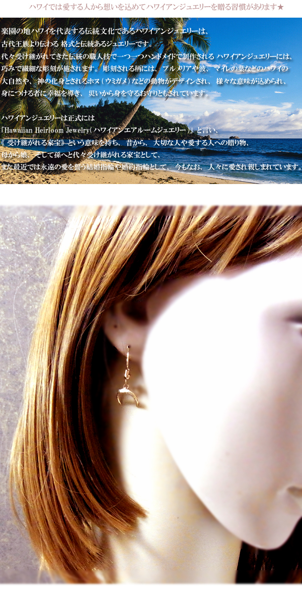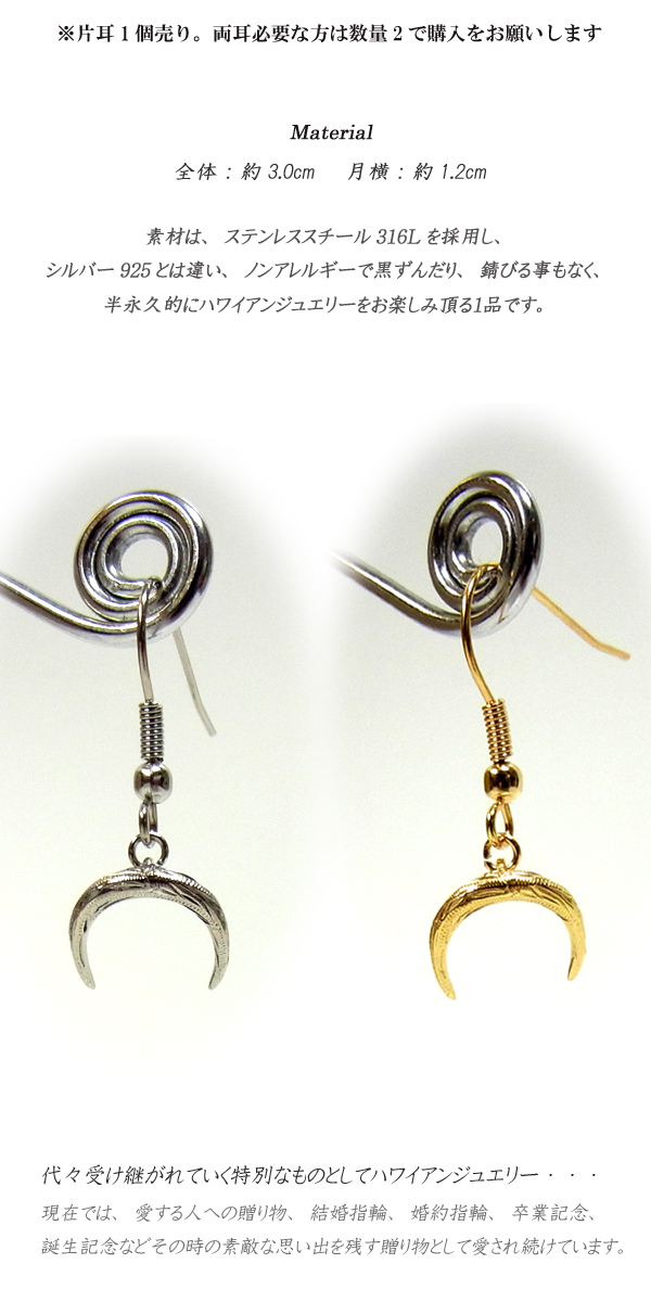 ハワイアンジュエリー ピアスサージカル ステンレス 三日月 ムーン レディース プレゼント ブランド 片耳 金属アレルギー対応 ラッピング対応