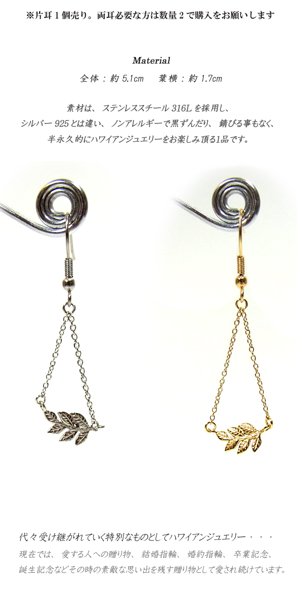 ハワイアンジュエリー ピアス サージカル ステンレス リーフ レディース プレゼント ブランド 片耳 金属アレルギー対応 ラッピング対応