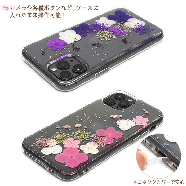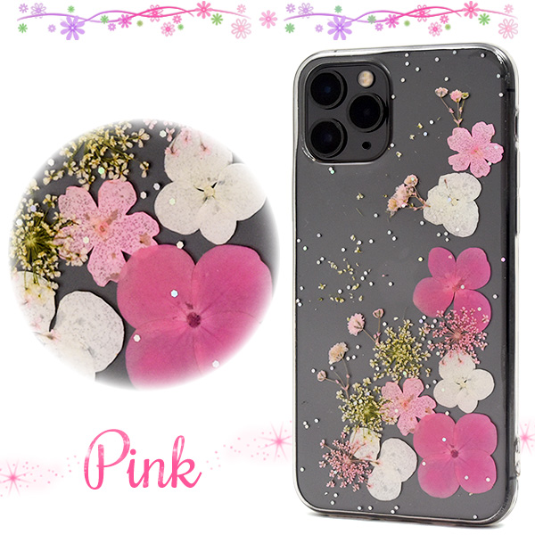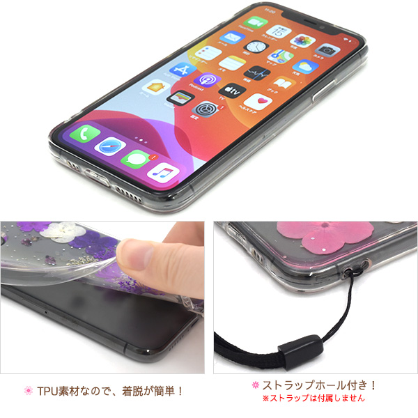 スマホケース iPhone 11 Pro ラメと押し花のソフトクリアケース iphone11pro 桃 紫 シンプル やわらか TPU 着脱可能 アイフォン アイホン イレブンプロ ケース スマホカバ 送料無料