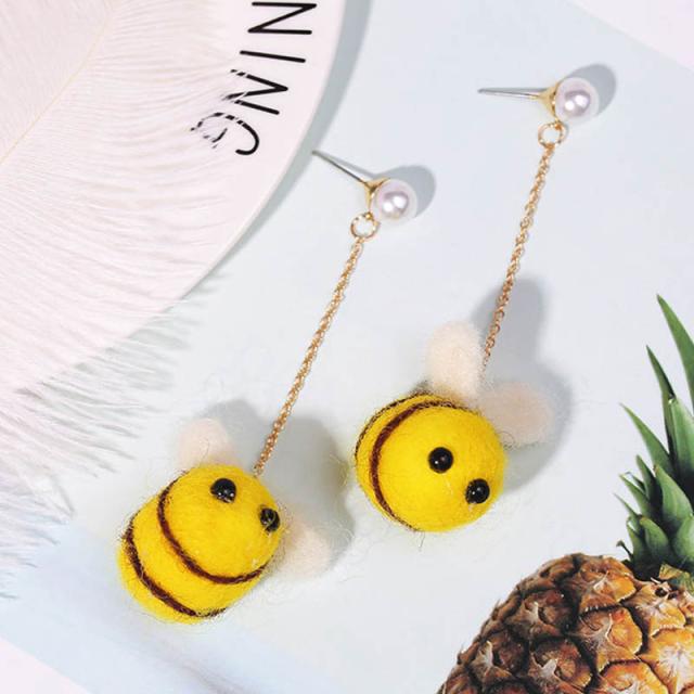 フェルトのマスコット ファッションピアス(ミツバチハニー) 1ペア販売 両耳分 スタッドピアス キャッチピアス ゴールド チェーン 揺れる おもしろい 面白い メンズ レディース 20G 20ゲージ 人形 ヌイグルミ 蜜蜂 蜂 ハチ かわいい 可愛い 可愛い 鎖 真珠 パール