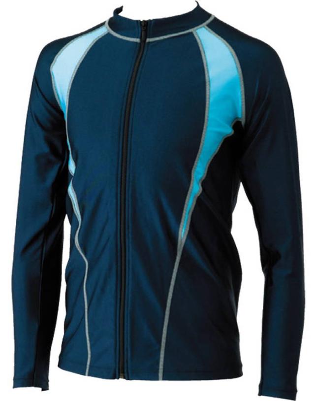 長袖でしっかり日焼け予防。水着の上からも着られるシャインガード。フルジップで着脱カンタン!紫外線からしっかり守ります。