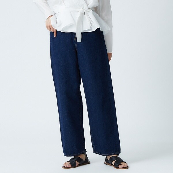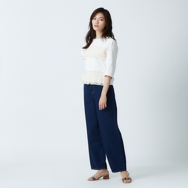 ・腰骨の位置からストンと真っすぐ落ちるパンツラインで品良く穿けるデニムに!
