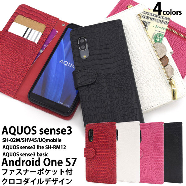 AQUOS sense3 SH-02M SHV45 / sense3lite SH-RM12 / sense3 basic / Android One S7 ケース 手帳型 クロコダイルレザーデザイン カバー アクオス センス スリー スリーライト ベーシック アンドロイドワン エスセブン スマホケース