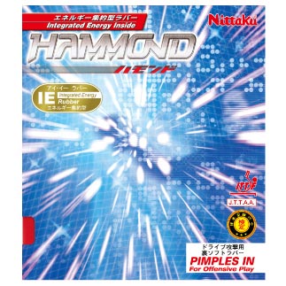 ラケットスウィングのエネルギーを効率よくボールに伝えようという発想、それがエネルギー集約型ラバーのコンセプトです。合成ゴム比率を高め、天然ゴムとの特長を最大限に活かしてエネルギーロスを少なくしました。「ハモンド」の高反発力を実感してみて下さい。