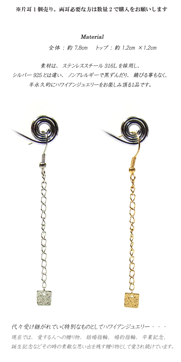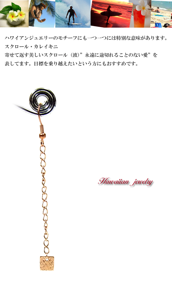 ハワイアンジュエリー ピアス 揺ら揺ら レディース プレゼント 片耳 金属アレルギー対応 サージカル ステンレス スクロール ぶら下がり ラッピング対応