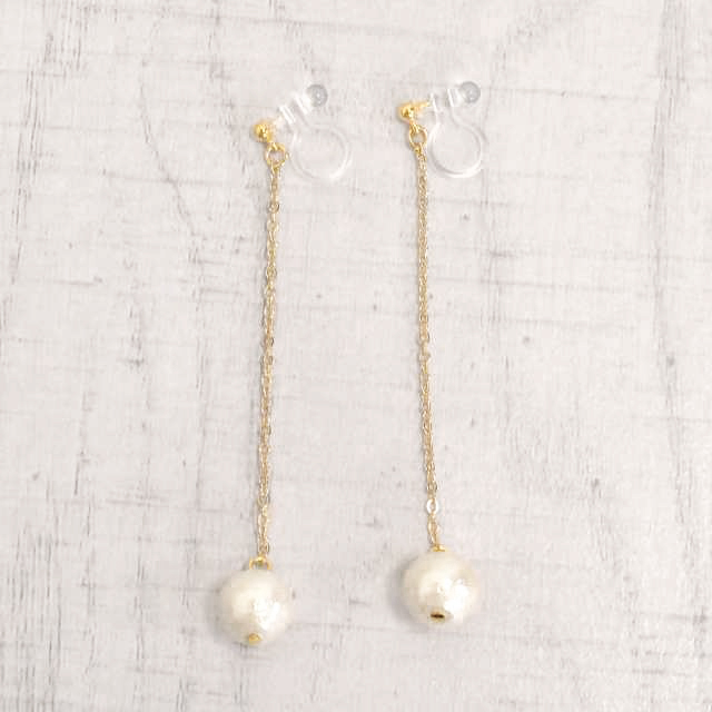 送料無料 8mmコットンパールチェーン樹脂イヤリング(ノンホールピアス) 真珠 ノンホール ピアス風 金属アレルギー 日本製