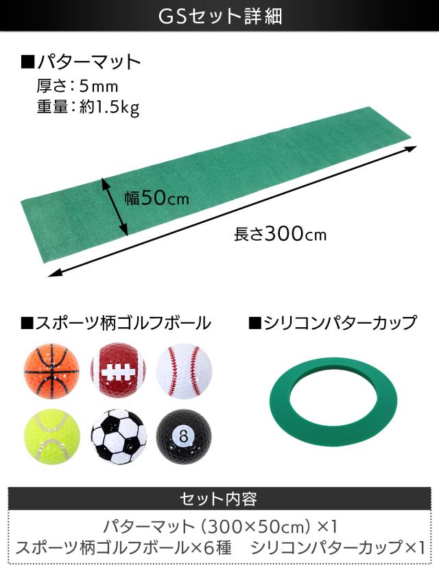 パターマット 3m ゴルフ 300×50cm Jシリーズ GSセット パター 練習 マット 室内 静音 ゴルフマット ベント 芝 パッティング パター練習 パット練習 絨毯 カーペット プリントゴルフボール パターカップ