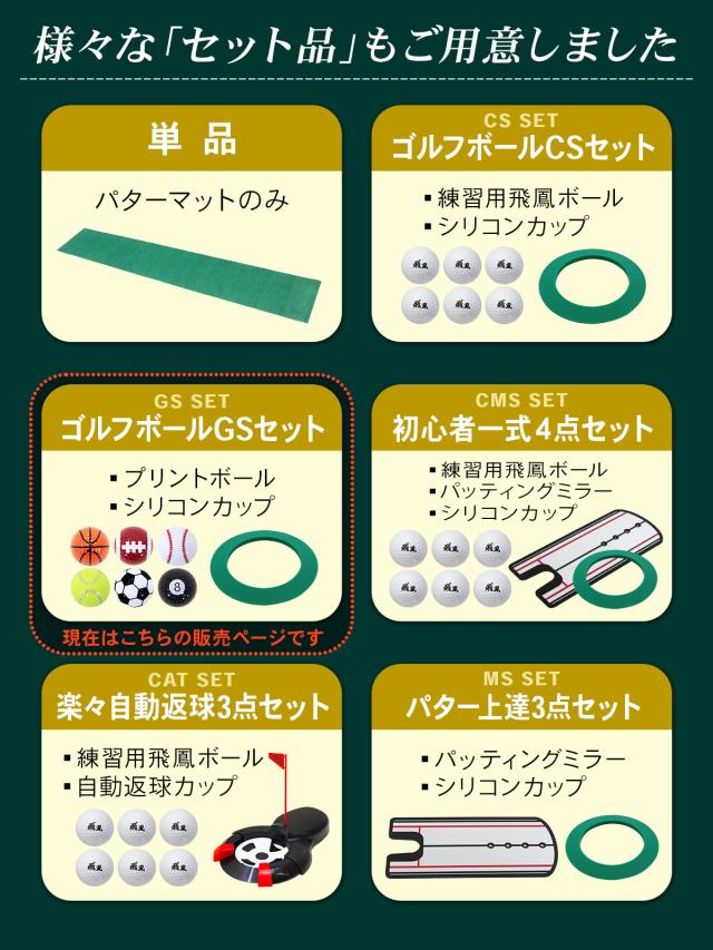 パターマット、スポーツプリント柄ゴルフボール6種、シリコンカップ