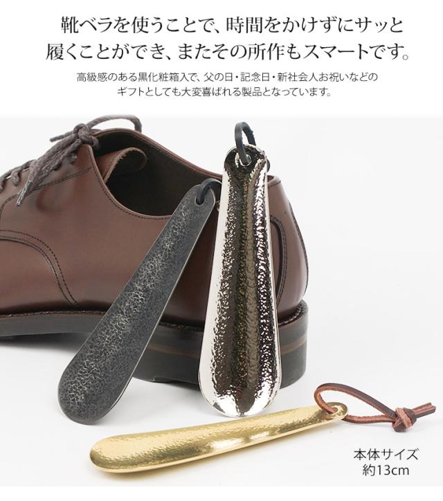 靴べら 携帯用日本製 真鍮製 シューホーン 革紐付き 国産 くつべら 小さい コンパクト 出張 旅行 入学 就職祝い 父の日 社会人 プレゼント ギフト リクルート ビジネス コロンブス 金属製 靴ベラ チェーシングシューホーン ミドル 送料無料