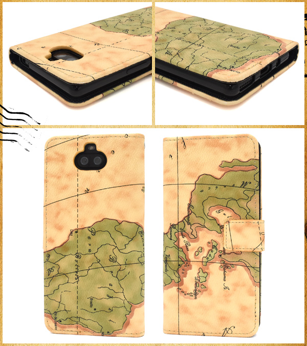 Xperia 8 SOV42 Y!mobile UQmobile用 ワールドマップデザイン手帳型ケース